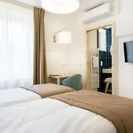A La Baule városi ingatlan a vendégek számára 50 szobát kínál, amelyek síkképernyős műholdas TV-t, valamint olyan alapvető szolgáltatásokat kínálnak, mint a klímaberendezés. A szép részletek között van a szőnyegpadló, valamint a szekrény. A magán fürdőszobák hajszárítóval felszereltek. A szobákból élvezheti a kertre néző kilátást.
